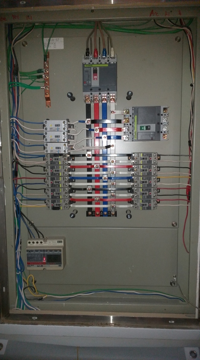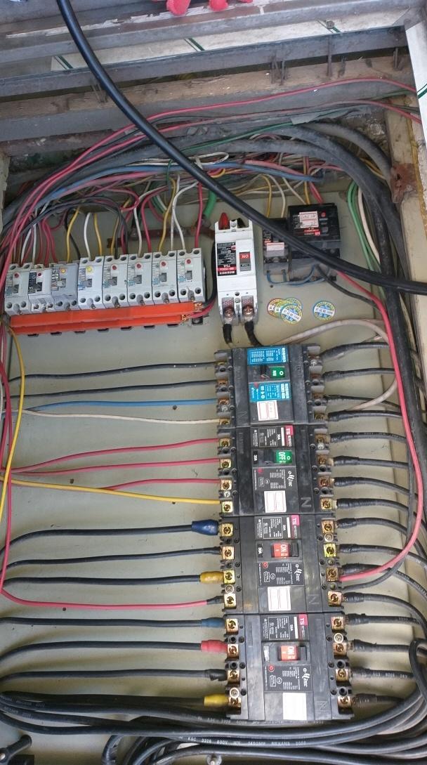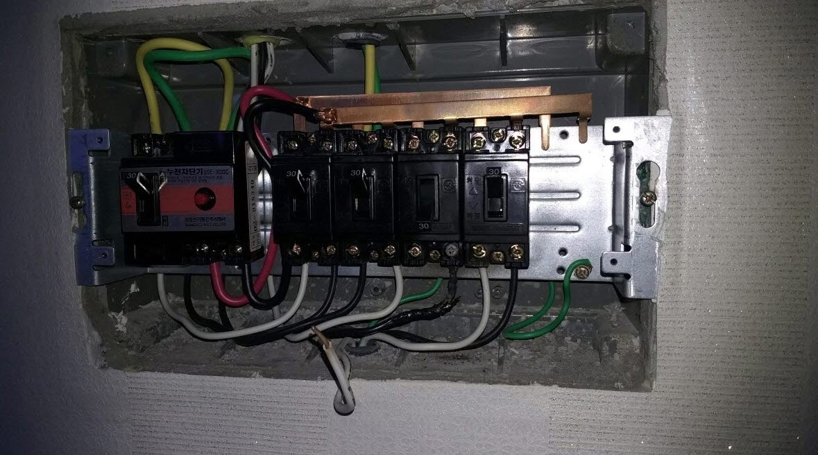 몇년 전에만 해도 메인이라하는 맨 왼쪽에 누전차단기30A가 설치되고 오른쪽으로 20~30A의 과부하 차단기가 설치되어 있었습니다. 보통은 차단기 색깔이 검정으로 되어있고 버튼도 초록이나 빨강으로 되어 있었네요.